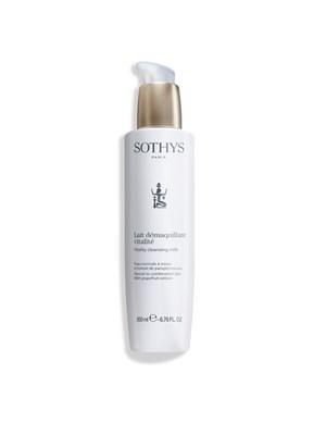 The Sothys Vitality Cleansing milk is a daily cleanser to remove superficial impurities accumulated during the day such as makeup, pollution and dust. Suitable for normal to combination skin. Fresh citrus smell.
